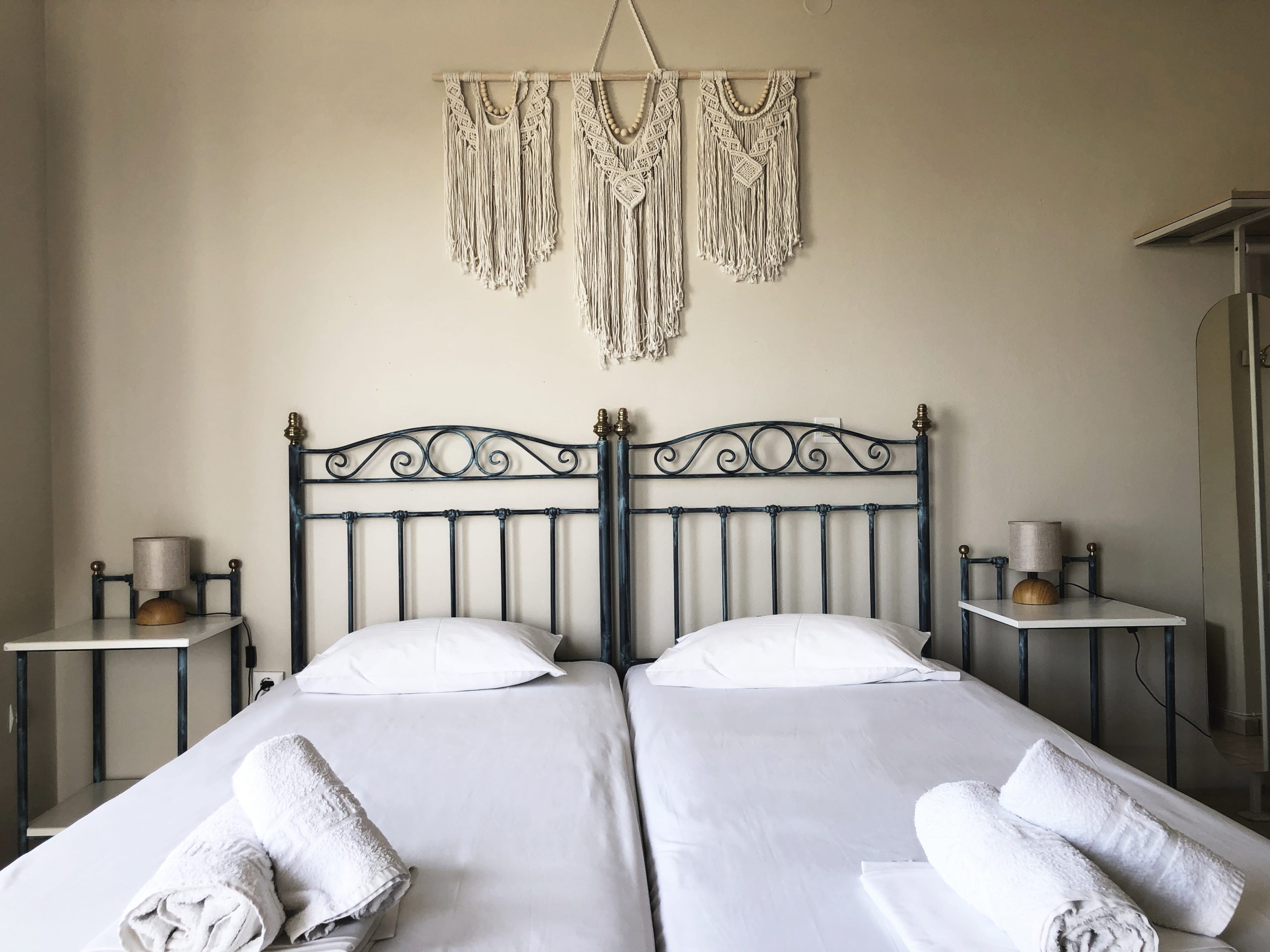 A spacious room with 2 beds that can comfortably accommodate two guests.